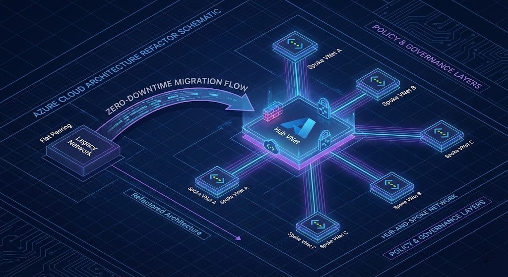 Refactoring in Azure isn’t glamorous. It’s like replacing your car’s wiring harness while driving 70 mph. But with a solid Cloud Strategy, you can realign governance, routing, and identity without outages or redeployments.