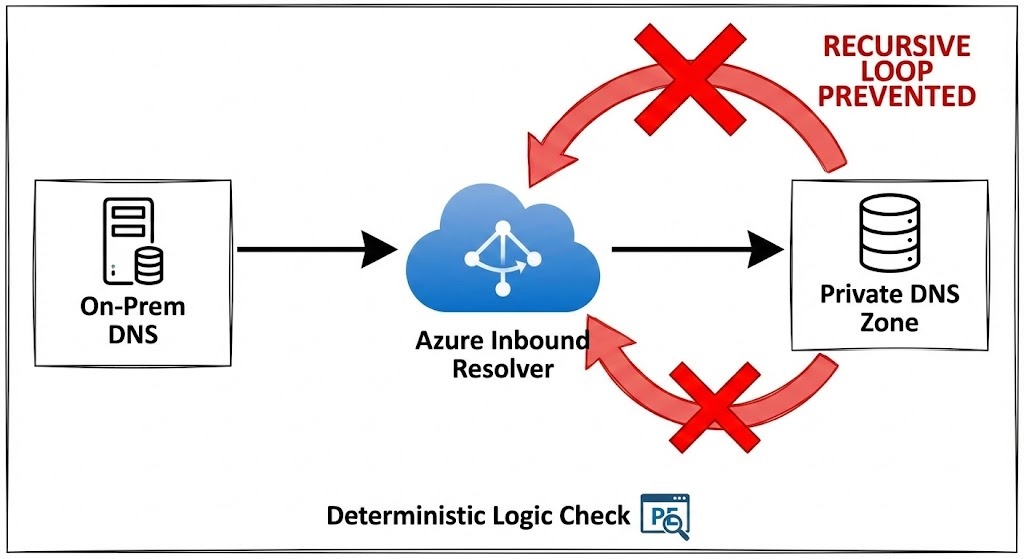• The Problem: Recursive DNS loops. A common outage scenario involves an On-Premises DNS Forwarder pointing to an Azure Inbound Resolver, which conditionally forwards back to itself or the on-prem VIP.