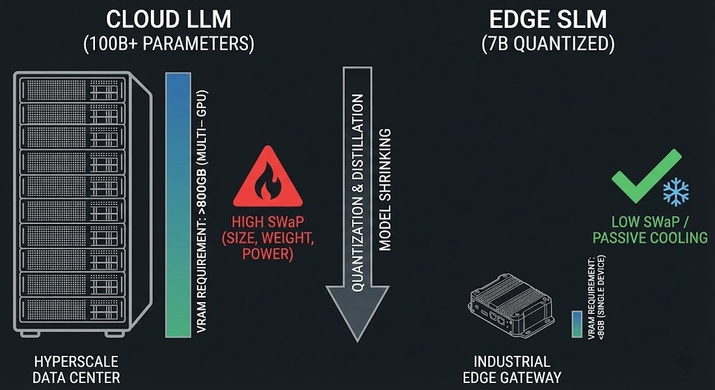 Now, flip the script. This time, you’re running smaller, sharper language models—maybe 7 billion parameters, often quantized—right on local, rugged hardware. The catch? Hardware limits and keeping your fleet under control. You have to push updates to thousands of edge devices that aren’t always connected. Each node needs to squeeze as much as it can out of limited memory—usually running super-lean, 4-bit models on less than 8GB of VRAM. It’s a whole different game.